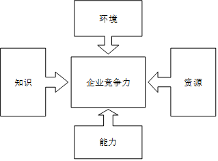 企业竞争力的影响因素实际上就是探讨企业竞争力的来源,企业竞争力是企业环境、资源、能力、知识四因素之间的综合效应所产生的,是企业竞争优势的源泉。