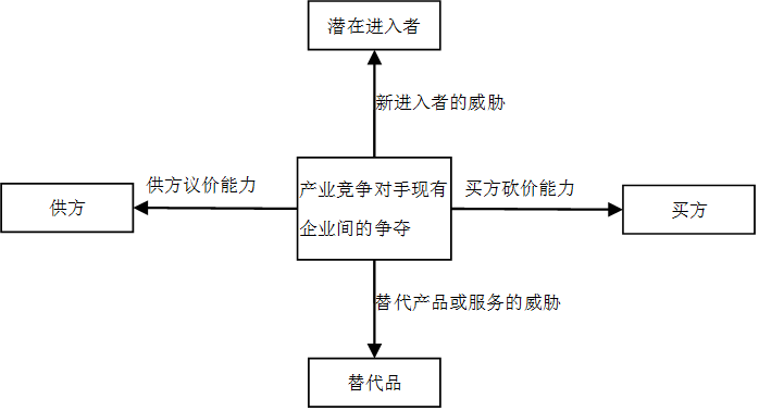 产业竞争力是产业内企业整体的竞争力,是产业内企业能力差异、产业发展所需资源条件的差异和产业发展环境差异的反映。一个产业内部的竞争状态取决于五种基本作用力:进入威胁、替代威胁、买方砍价能力、供方议价能力及现有竞争对手的竞争。一个产业的进入威胁主要体现于进入壁垒及潜在进入者可能面临的现有进入者设置的障碍;替代品为产业中企业的定价设置了上限,决定了一个产业的潜在收益;买方通过砍价、提高产品质量要求、索取附加的服务项目等手段,迫使企业降低利润空间;供方通过提价、降低产品或服务质量等,对产业内企业施加压力;产业内已有企业间的相互竞争行为也会牵制产业的竞争强度。这些作用力共同影响了产业竞争强度及产业的潜在利益,从而影响了产业竞争力。